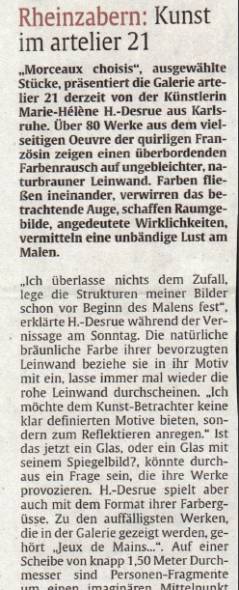 Pressestimmen zur Ausstellung Malerei im Rathaus Gernsbach